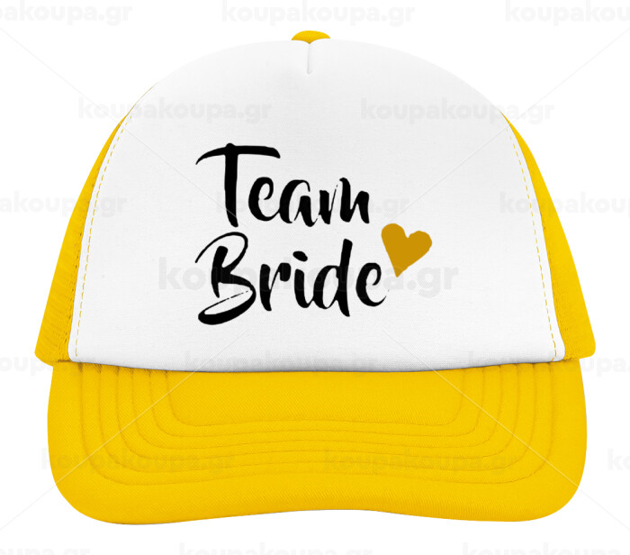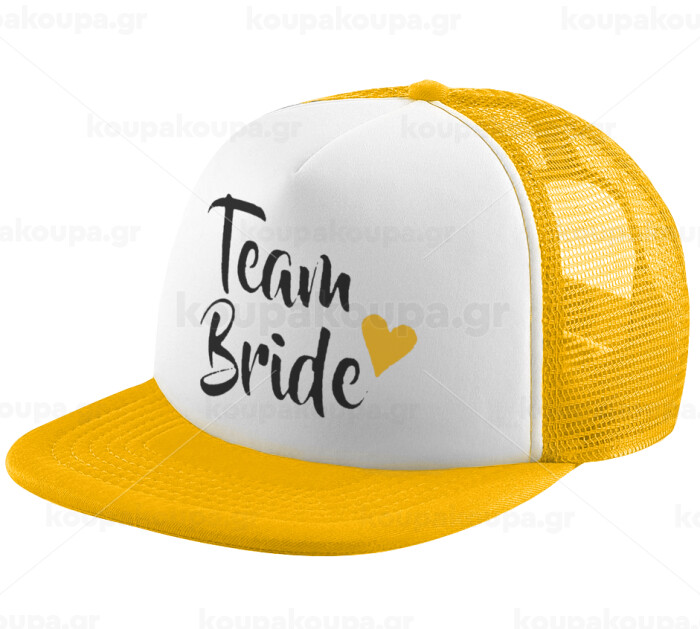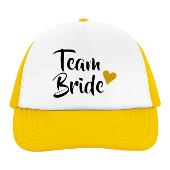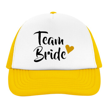 Team Bride, Adult Soft Trucker Hat with Yellow/White Mesh (POLYESTER, ADULT, UNISEX, ONE SIZE)