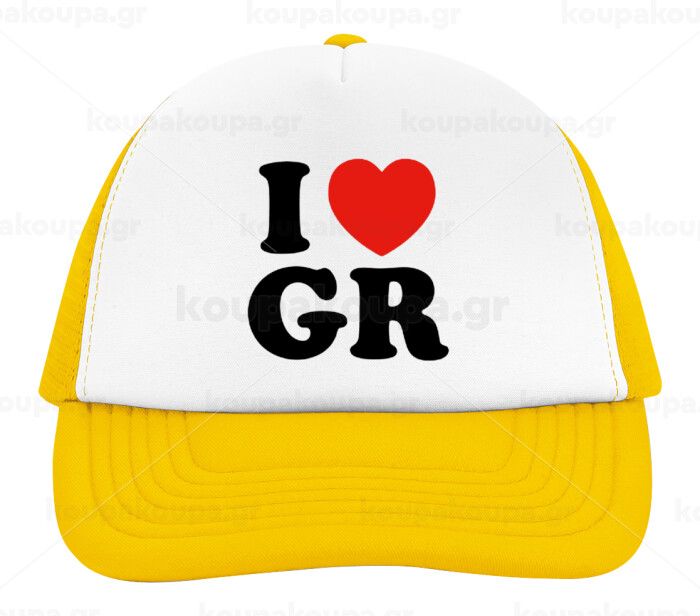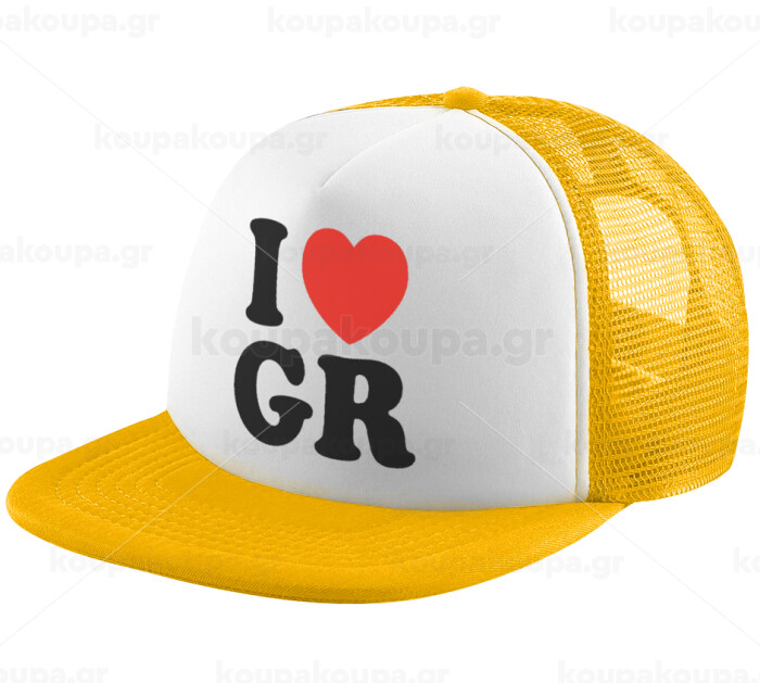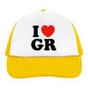 I Love GR, Adult Soft Trucker Hat with Yellow/White Mesh (POLYESTER, ADULT, UNISEX, ONE SIZE)