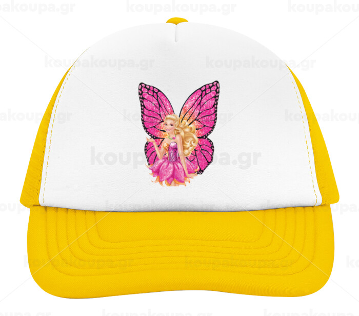 A fairy Barbie, Adult Soft Trucker Hat with Yellow/White Mesh (POLYESTER, ADULT, UNISEX, ONE SIZE)