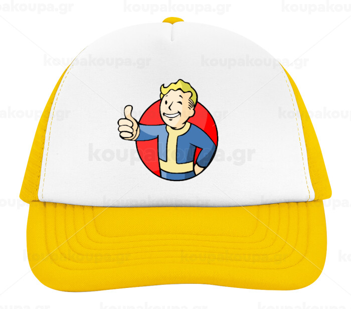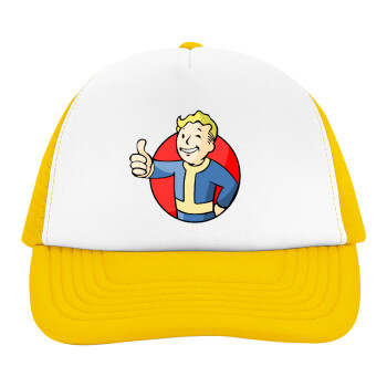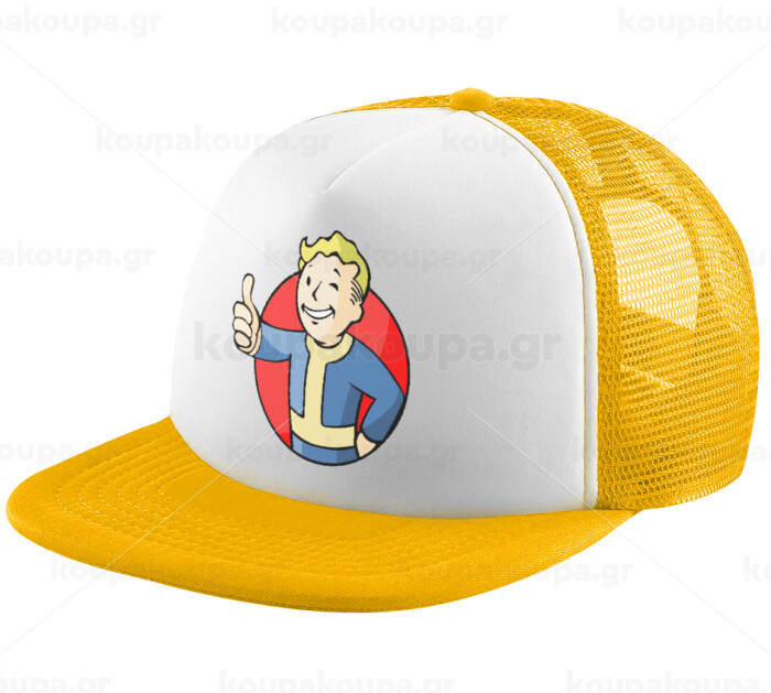 Fallout Vault Boy, Adult Soft Trucker Hat with Yellow/White Mesh (POLYESTER, ADULT, UNISEX, ONE SIZE)