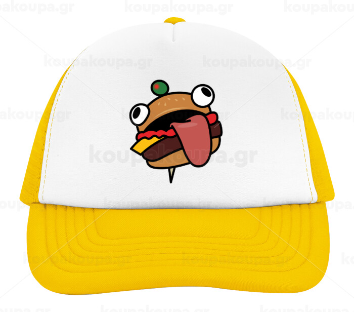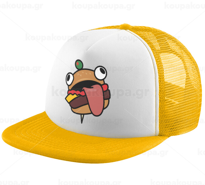 Fortnite Durr Burger, Adult Soft Trucker Hat with Yellow/White Mesh (POLYESTER, ADULT, UNISEX, ONE SIZE)