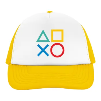 Gaming Symbols, Adult Soft Trucker Hat with Yellow/White Mesh (POLYESTER, ADULT, UNISEX, ONE SIZE)