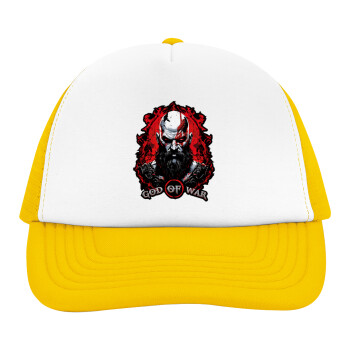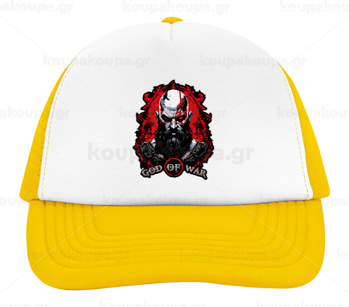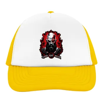 God of war, Adult Soft Trucker Hat with Yellow/White Mesh (POLYESTER, ADULT, UNISEX, ONE SIZE)