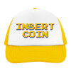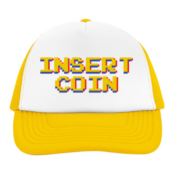Insert coin!!!, Adult Soft Trucker Hat with Yellow/White Mesh (POLYESTER, ADULT, UNISEX, ONE SIZE)
