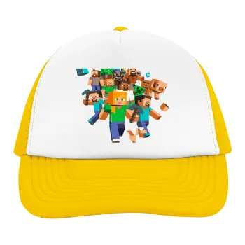 Minecraft adventure, Adult Soft Trucker Hat with Yellow/White Mesh (POLYESTER, ADULT, UNISEX, ONE SIZE)