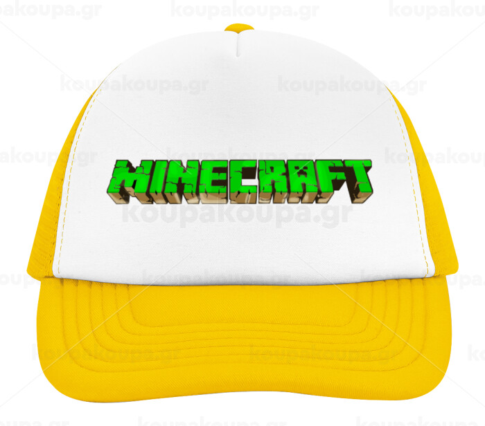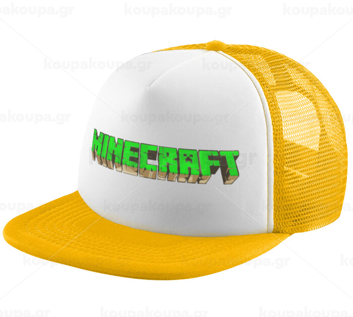 Minecraft logo green, Adult Soft Trucker Hat with Yellow/White Mesh (POLYESTER, ADULT, UNISEX, ONE SIZE)