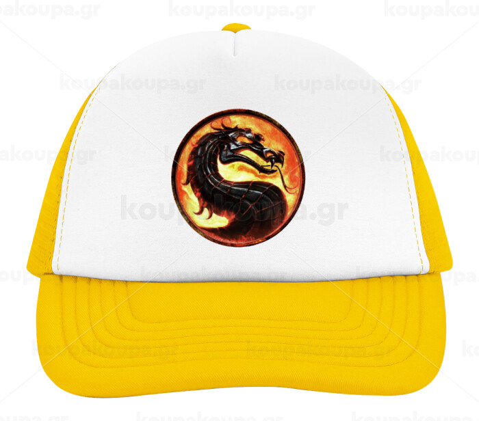 Mortal Kombat, Adult Soft Trucker Hat with Yellow/White Mesh (POLYESTER, ADULT, UNISEX, ONE SIZE)