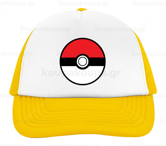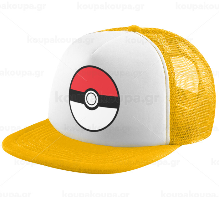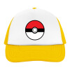 Pokemon ball, Adult Soft Trucker Hat with Yellow/White Mesh (POLYESTER, ADULT, UNISEX, ONE SIZE)