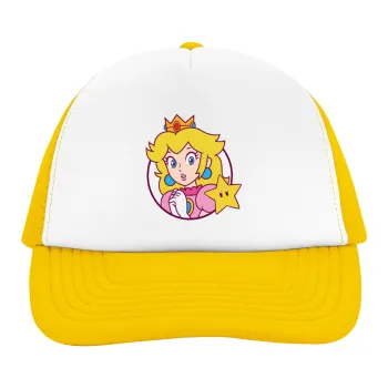 Princess Peach, Adult Soft Trucker Hat with Yellow/White Mesh (POLYESTER, ADULT, UNISEX, ONE SIZE)
