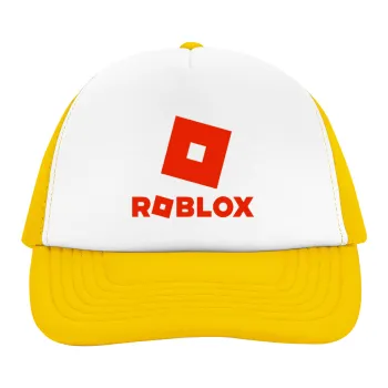 Roblox red, Adult Soft Trucker Hat with Yellow/White Mesh (POLYESTER, ADULT, UNISEX, ONE SIZE)