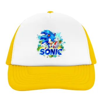 Sonic, Adult Soft Trucker Hat with Yellow/White Mesh (POLYESTER, ADULT, UNISEX, ONE SIZE)