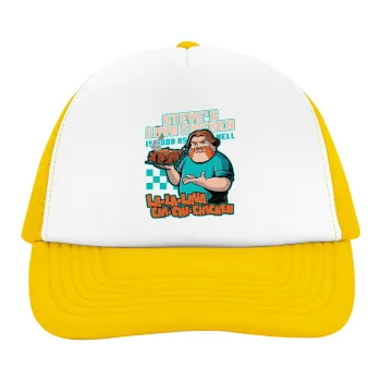 Steves Lava Chicken, Adult Soft Trucker Hat with Yellow/White Mesh (POLYESTER, ADULT, UNISEX, ONE SIZE)