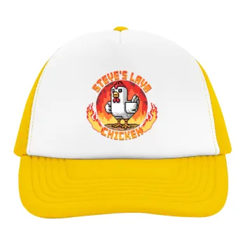 Steve's Lava Chicken, Adult Soft Trucker Hat with Yellow/White Mesh (POLYESTER, ADULT, UNISEX, ONE SIZE)