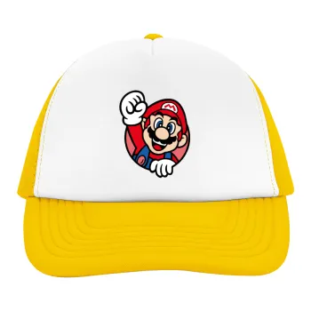 Super mario win, Adult Soft Trucker Hat with Yellow/White Mesh (POLYESTER, ADULT, UNISEX, ONE SIZE)