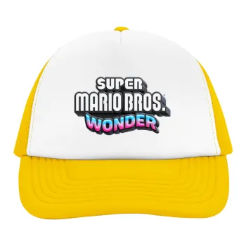 Super mario wonder, Adult Soft Trucker Hat with Yellow/White Mesh (POLYESTER, ADULT, UNISEX, ONE SIZE)