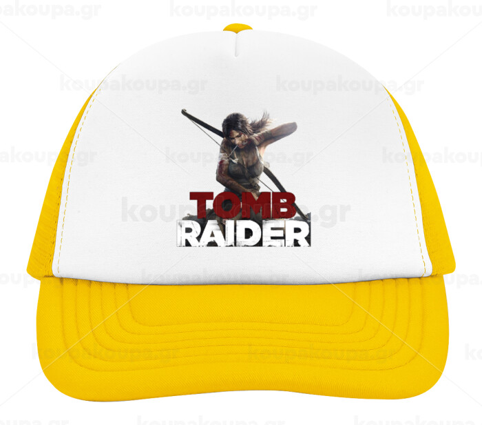 Tomb raider, Adult Soft Trucker Hat with Yellow/White Mesh (POLYESTER, ADULT, UNISEX, ONE SIZE)