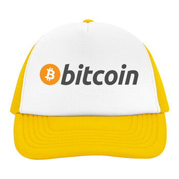 Bitcoin Crypto, Adult Soft Trucker Hat with Yellow/White Mesh (POLYESTER, ADULT, UNISEX, ONE SIZE)