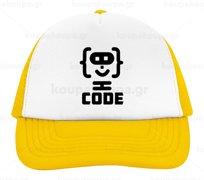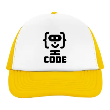 Code Heroes symbol, Adult Soft Trucker Hat with Yellow/White Mesh (POLYESTER, ADULT, UNISEX, ONE SIZE)