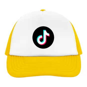 TikTok, Adult Soft Trucker Hat with Yellow/White Mesh (POLYESTER, ADULT, UNISEX, ONE SIZE)