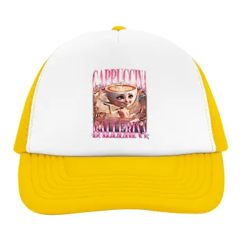 BALLERINA CAPUCHINA FUNK, Adult Soft Trucker Hat with Yellow/White Mesh (POLYESTER, ADULT, UNISEX, ONE SIZE)