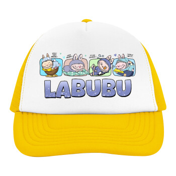 Labubu, Adult Soft Trucker Hat with Yellow/White Mesh (POLYESTER, ADULT, UNISEX, ONE SIZE)
