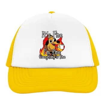 It's Fine I'm Fine Everything Is Fine, Adult Soft Trucker Hat with Yellow/White Mesh (POLYESTER, ADULT, UNISEX, ONE SIZE)
