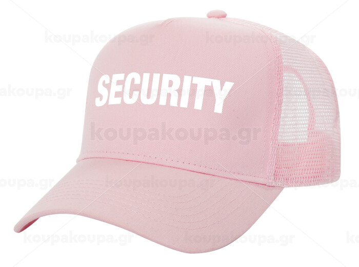 Security, Adult Structured Trucker Hat, with Mesh, PINK (100% COTTON, ADULT, UNISEX, ONE SIZE)