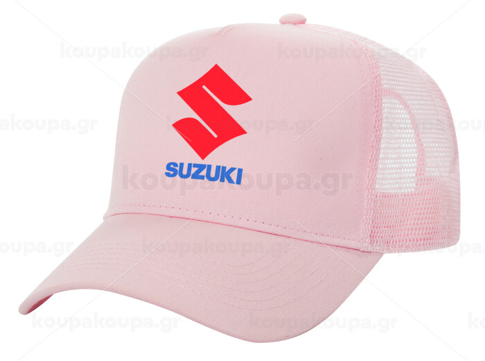 SUZUKI, Adult Structured Trucker Hat, with Mesh, PINK (100% COTTON, ADULT, UNISEX, ONE SIZE)