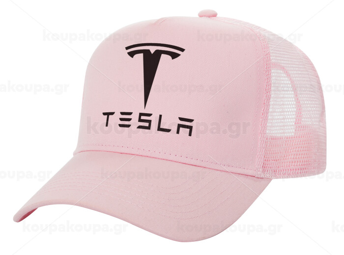 Tesla motors, Adult Structured Trucker Hat, with Mesh, PINK (100% COTTON, ADULT, UNISEX, ONE SIZE)
