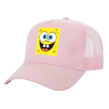 BOB, Adult Structured Trucker Hat, with Mesh, PINK (100% COTTON, ADULT, UNISEX, ONE SIZE)