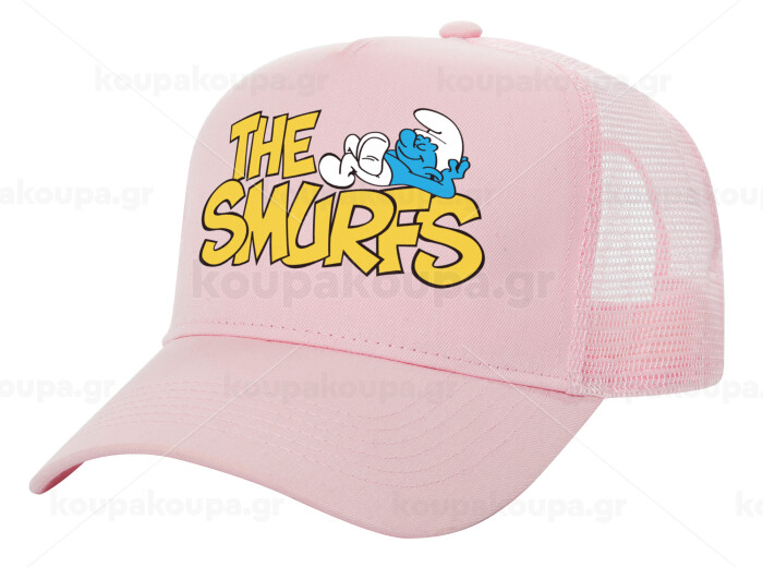 The smurfs, Adult Structured Trucker Hat, with Mesh, PINK (100% COTTON, ADULT, UNISEX, ONE SIZE)