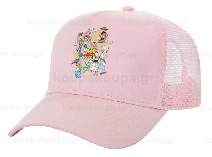 toystory characters, Adult Structured Trucker Hat, with Mesh, PINK (100% COTTON, ADULT, UNISEX, ONE SIZE)