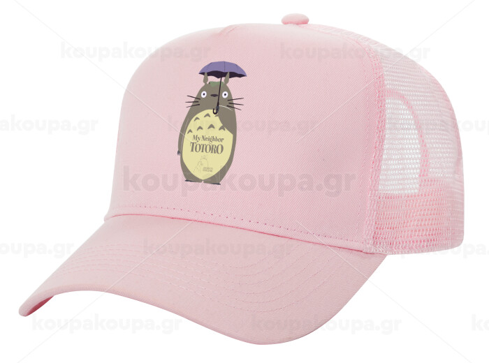 Totoro from My Neighbor Totoro, Adult Structured Trucker Hat, with Mesh, PINK (100% COTTON, ADULT, UNISEX, ONE SIZE)