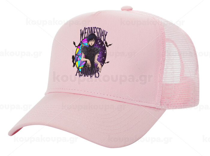 Wednesday Jenna Ortega, Adult Structured Trucker Hat, with Mesh, PINK (100% COTTON, ADULT, UNISEX, ONE SIZE)