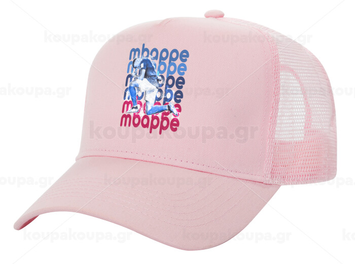 Kylian Mbappé, Adult Structured Trucker Hat, with Mesh, PINK (100% COTTON, ADULT, UNISEX, ONE SIZE)