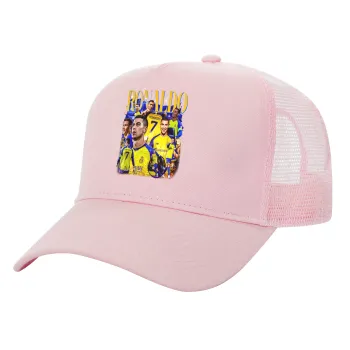 Cristiano Ronaldo Al Nassr, Adult Structured Trucker Hat, with Mesh, PINK (100% COTTON, ADULT, UNISEX, ONE SIZE)