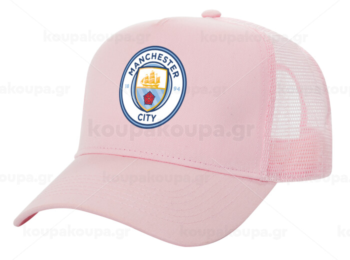 Manchester City FC , Adult Structured Trucker Hat, with Mesh, PINK (100% COTTON, ADULT, UNISEX, ONE SIZE)