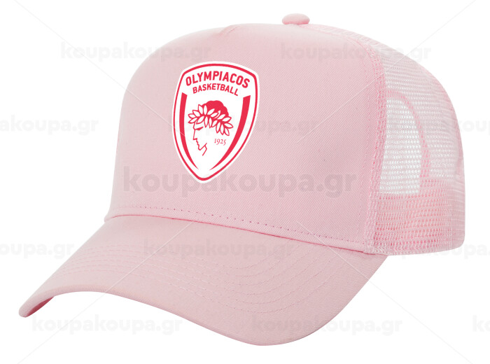 Olympiacos B.C., Adult Structured Trucker Hat, with Mesh, PINK (100% COTTON, ADULT, UNISEX, ONE SIZE)