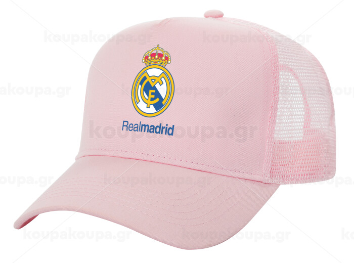 Real Madrid CF, Adult Structured Trucker Hat, with Mesh, PINK (100% COTTON, ADULT, UNISEX, ONE SIZE)