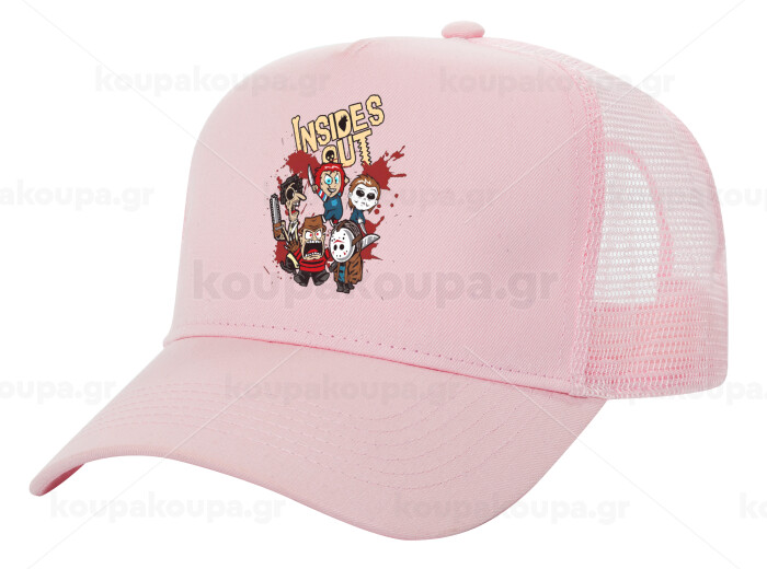 Halloween Inside out, Adult Structured Trucker Hat, with Mesh, PINK (100% COTTON, ADULT, UNISEX, ONE SIZE)
