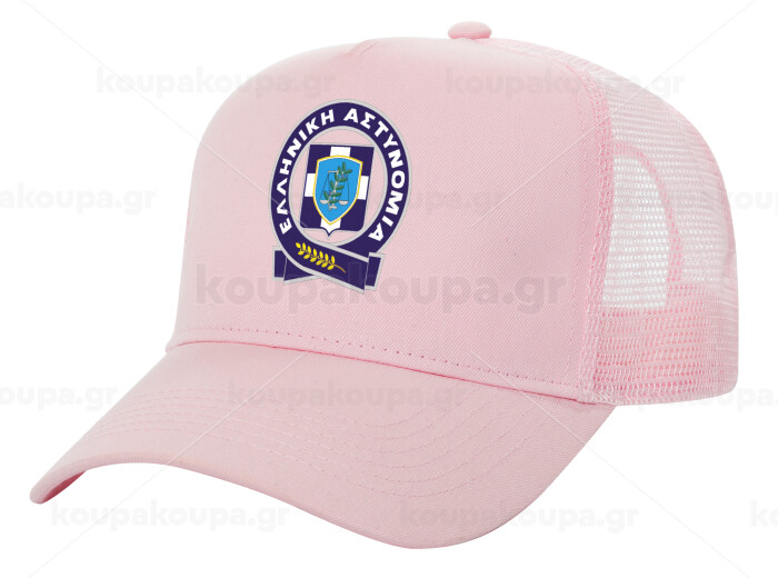 Ελληνική Αστυνομία, Adult Structured Trucker Hat, with Mesh, PINK (100% COTTON, ADULT, UNISEX, ONE SIZE)