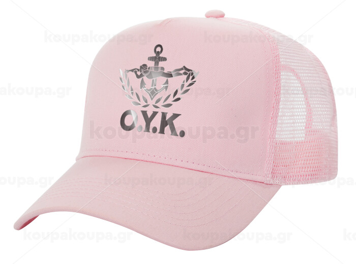 Ο.Υ.Κ., Adult Structured Trucker Hat, with Mesh, PINK (100% COTTON, ADULT, UNISEX, ONE SIZE)