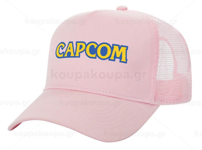 Capcom, Adult Structured Trucker Hat, with Mesh, PINK (100% COTTON, ADULT, UNISEX, ONE SIZE)
