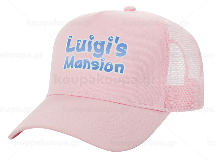 Luigi's Mansion, Adult Structured Trucker Hat, with Mesh, PINK (100% COTTON, ADULT, UNISEX, ONE SIZE)