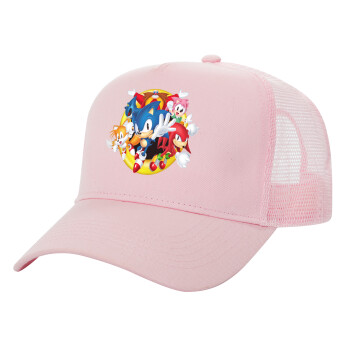 Sonic and friends, Adult Structured Trucker Hat, with Mesh, PINK (100% COTTON, ADULT, UNISEX, ONE SIZE)