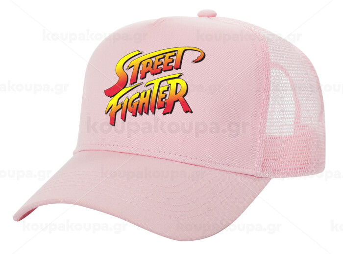 Street fighter, Adult Structured Trucker Hat, with Mesh, PINK (100% COTTON, ADULT, UNISEX, ONE SIZE)