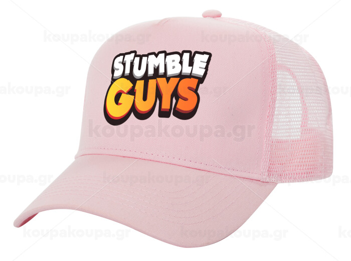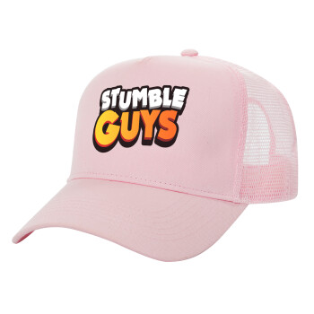 Stumble Guys, Adult Structured Trucker Hat, with Mesh, PINK (100% COTTON, ADULT, UNISEX, ONE SIZE)
