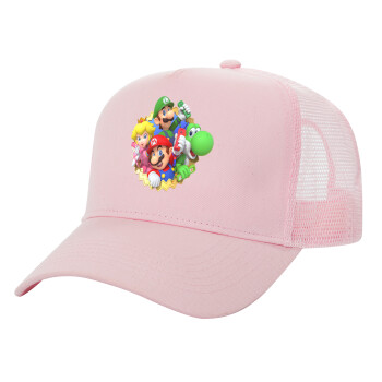Super mario and Friends, Adult Structured Trucker Hat, with Mesh, PINK (100% COTTON, ADULT, UNISEX, ONE SIZE)