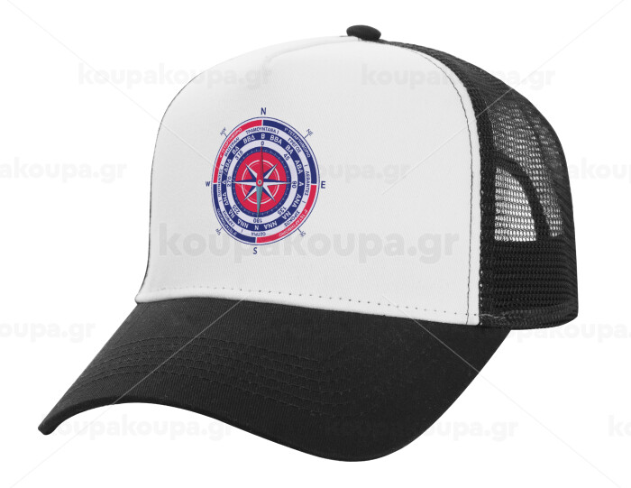 Wind compass, Adult Structured Trucker Hat, with Mesh, WHITE/BLACK (100% COTTON, ADULT, UNISEX, ONE SIZE)