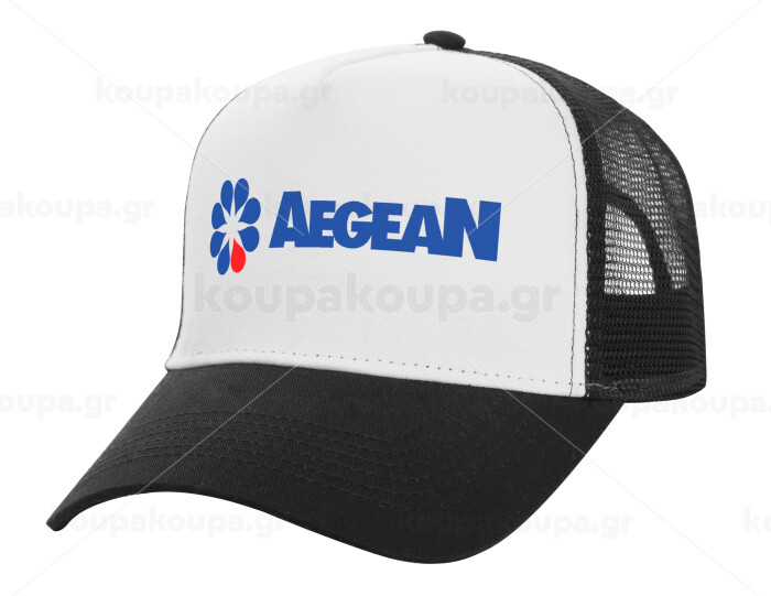 Πρατήριο καυσίμων AEGEAN, Adult Structured Trucker Hat, with Mesh, WHITE/BLACK (100% COTTON, ADULT, UNISEX, ONE SIZE)